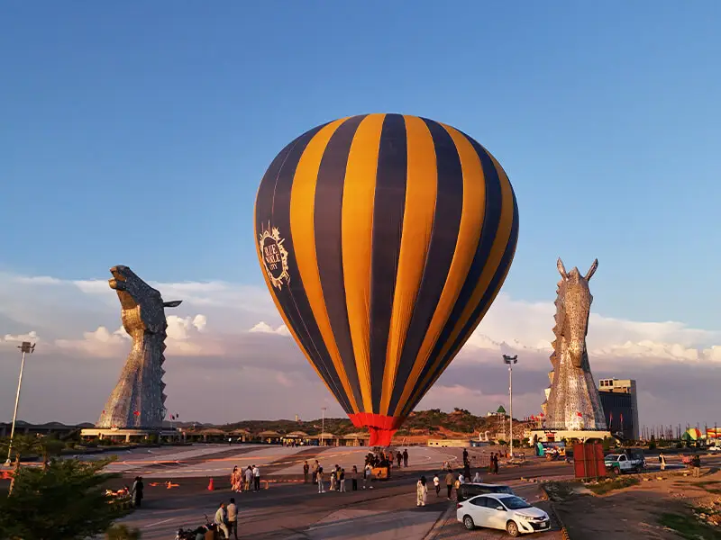The Hot Air Balloon Arena at Blue World City introduces a truly unique and breathtaking experience, bringing the magic of aerial tourism to Pakistan. For the first time, visitors can enjoy hot air balloon rides within a purpose-built tourist city, offering panoramic views and an unforgettable sense of adventure.